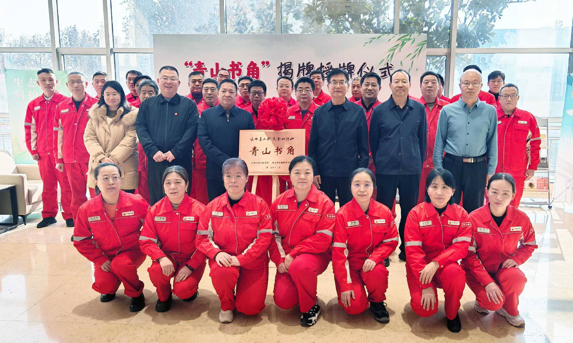 揭牌仪式上,河北省环境科学学会副会长、河北省生态环境厅原一级巡视员陈恩惠,华北油田第二采油厂厂长李照分别致辞。随后,陈恩惠副会长、李东林副局长、李云凯秘书长及李照厂长共同为“青山书角”揭牌。华北油田第二采油厂员工代表共同见证这一重要时刻。